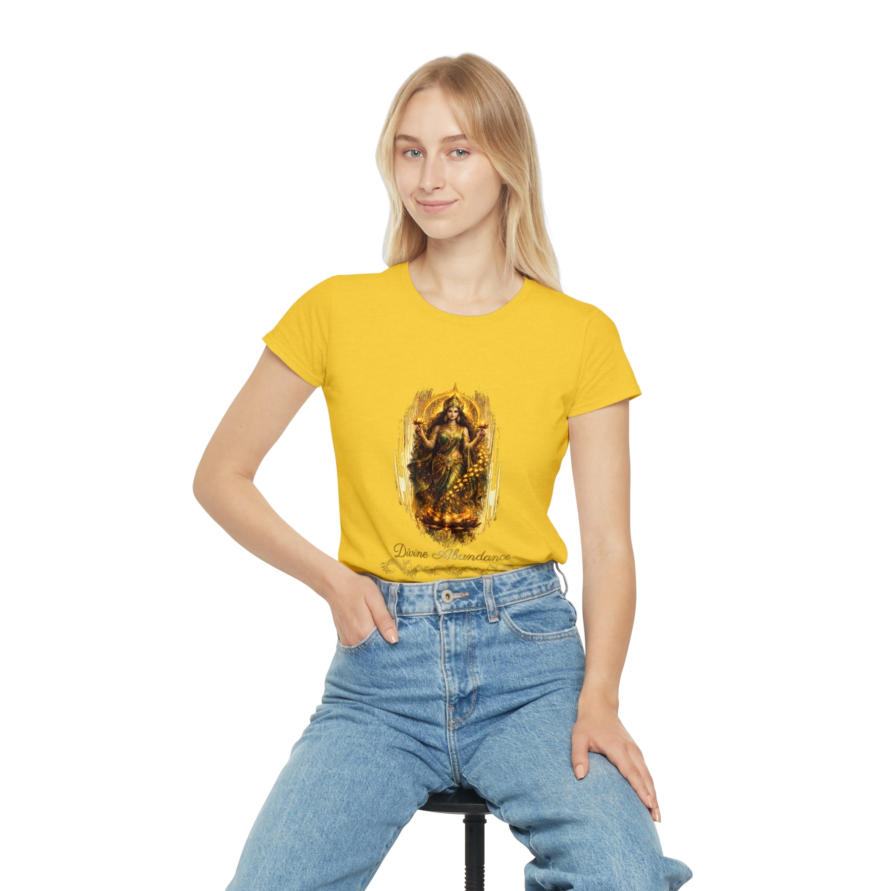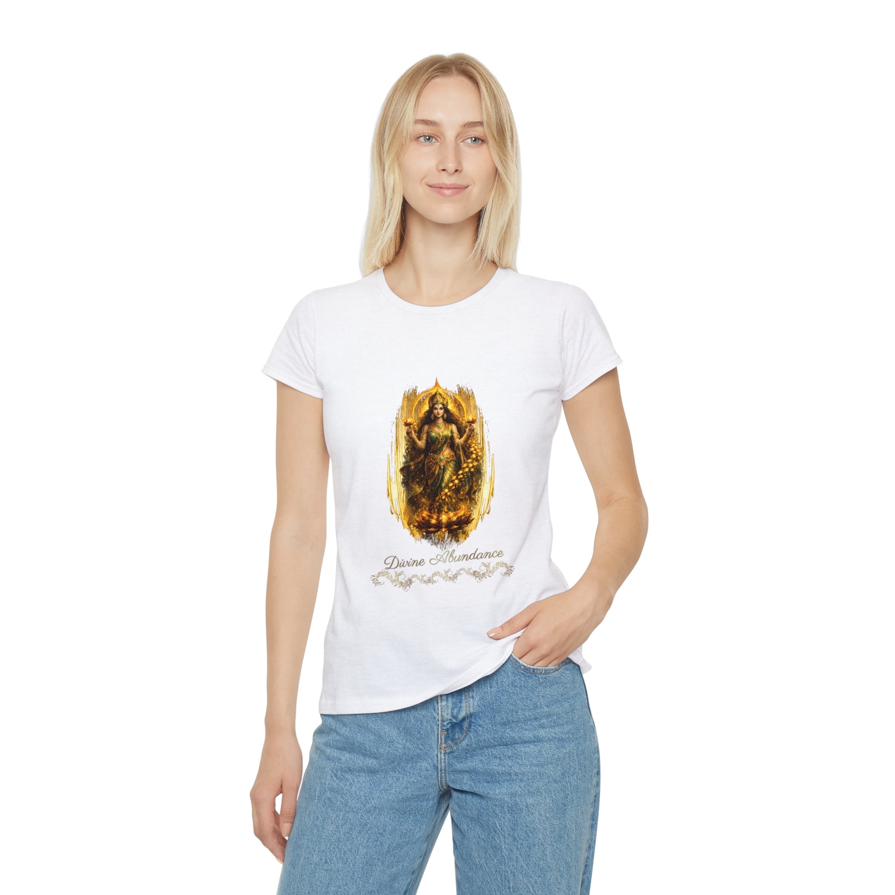 Lakshmi Divine Abundance Women's T‑Shirt — Golden Goddess Graphic