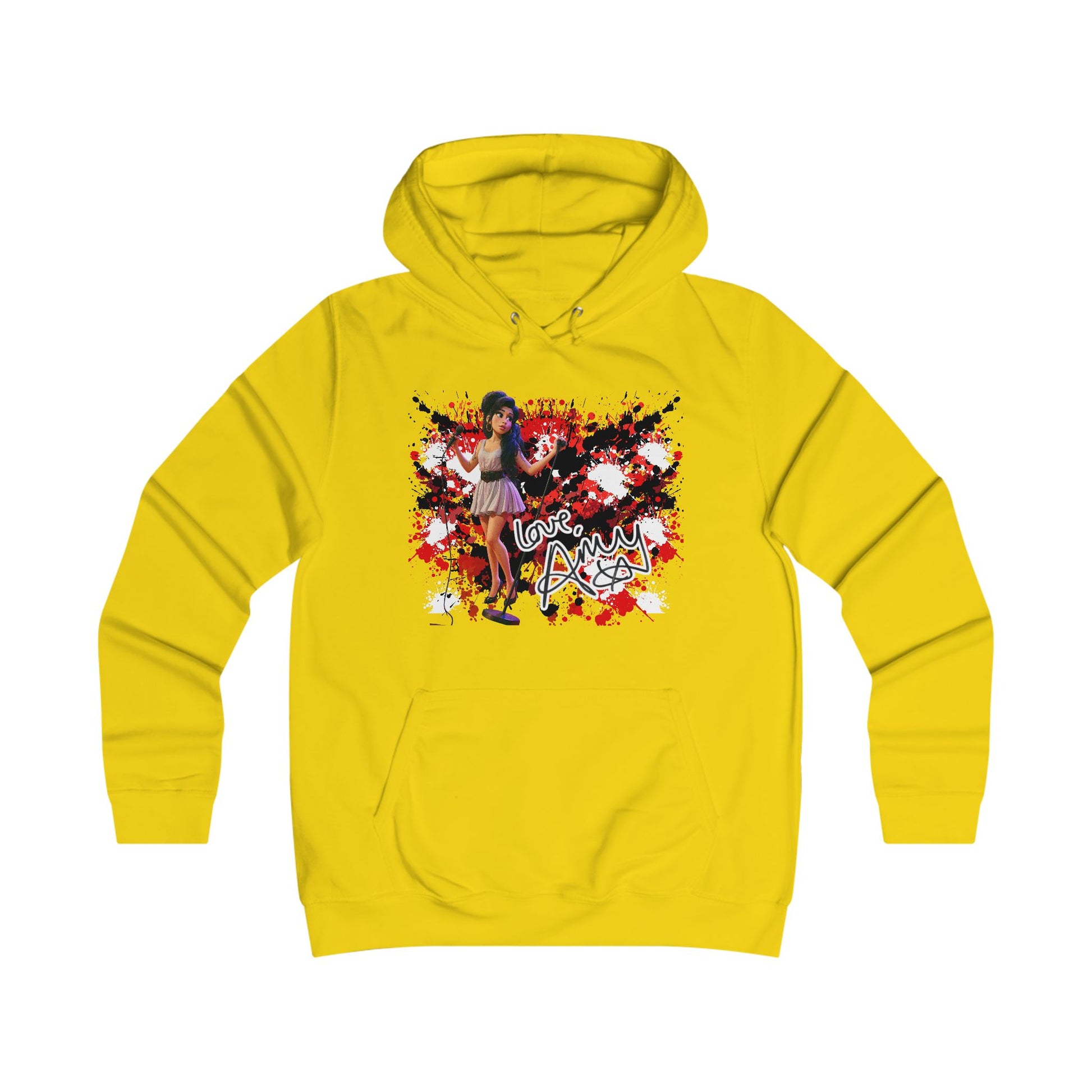 This design features Amy Wine_house with her signature beehive hairstyle, tattoos, and microphone, alongside the handwritten âLove, Amyâ autograph. A must-have for music lovers, retro fans, and anyone who carries her songs in their heart.