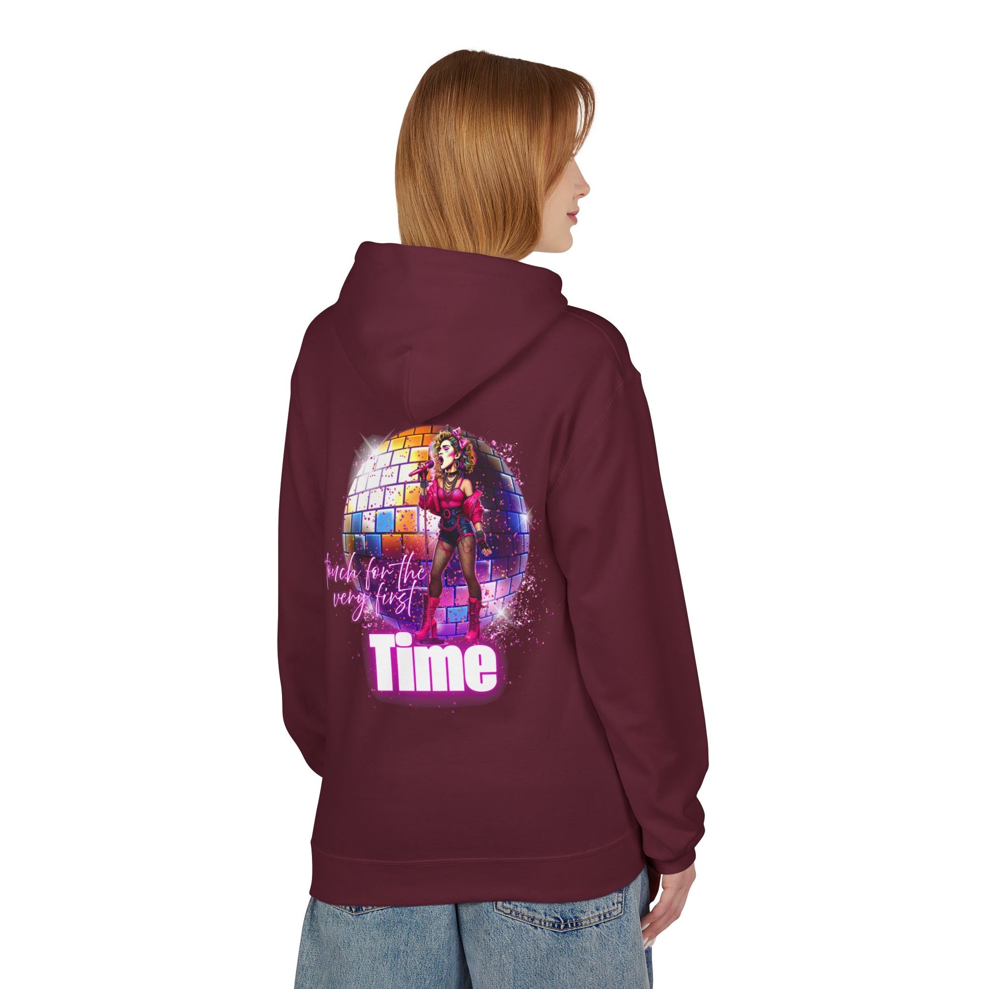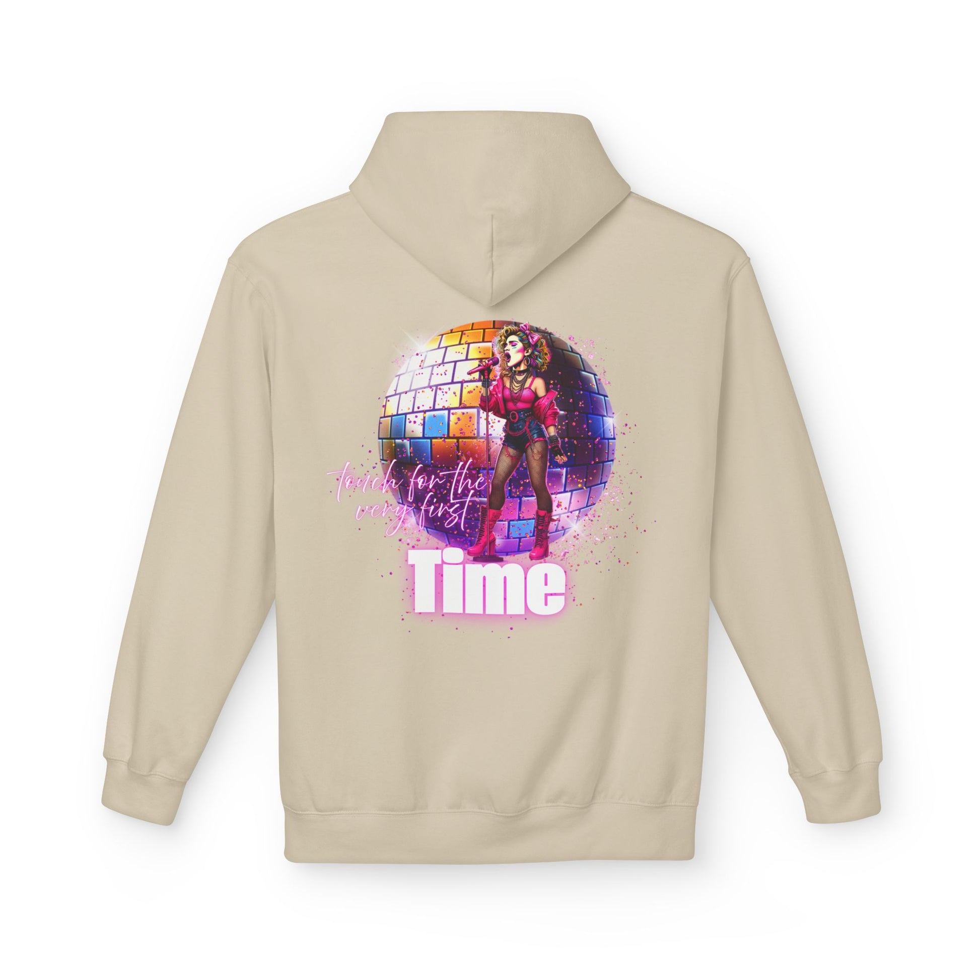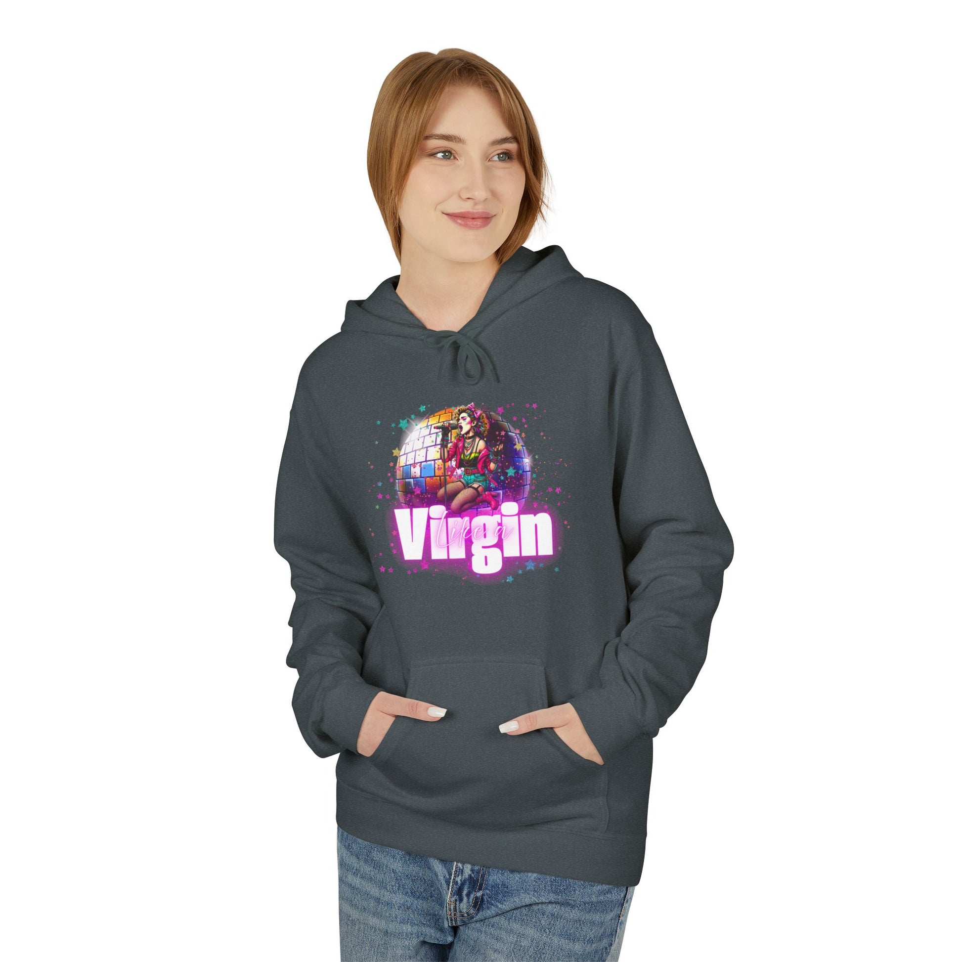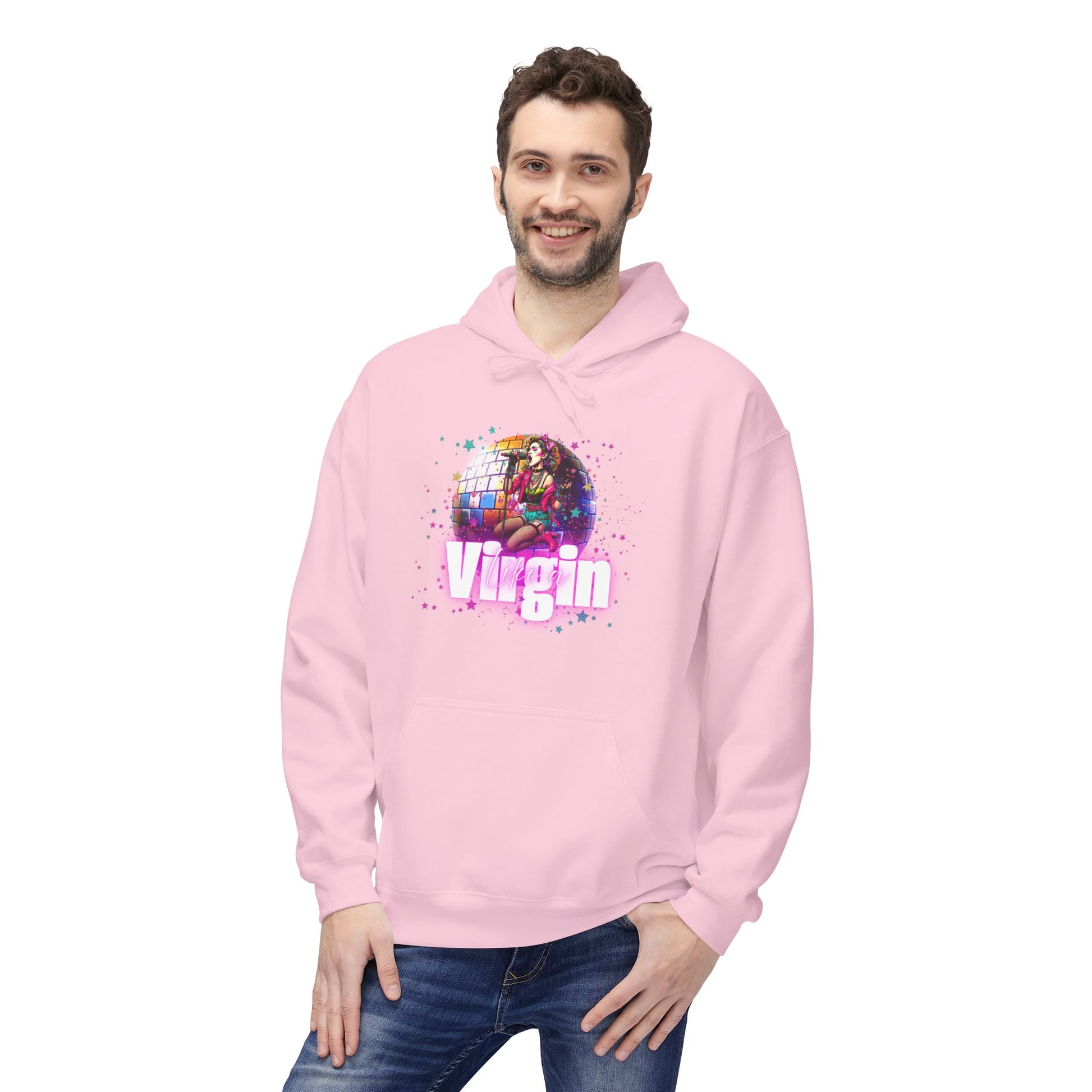 This hoddie takes you straight back to the 80s disco era! With its vibrant, colorful design full of stars, neon tones, and the bold “Virgin” artwork, it’s a true eye-catcher.
