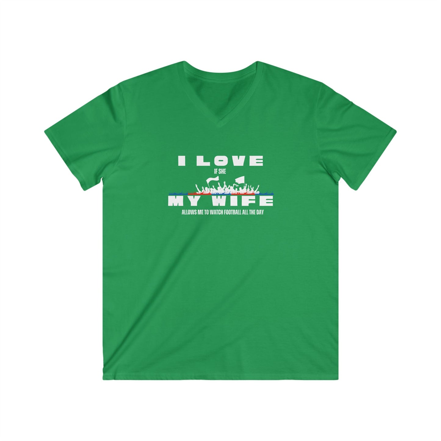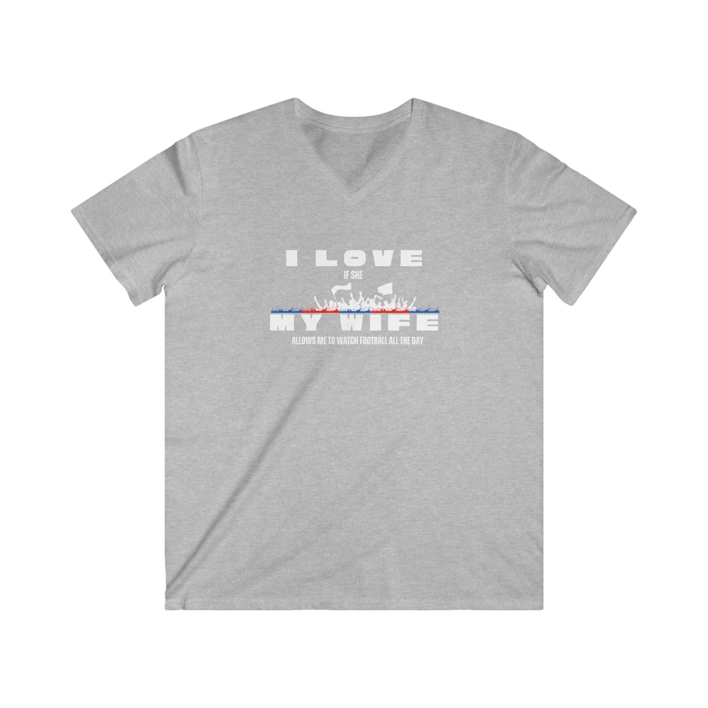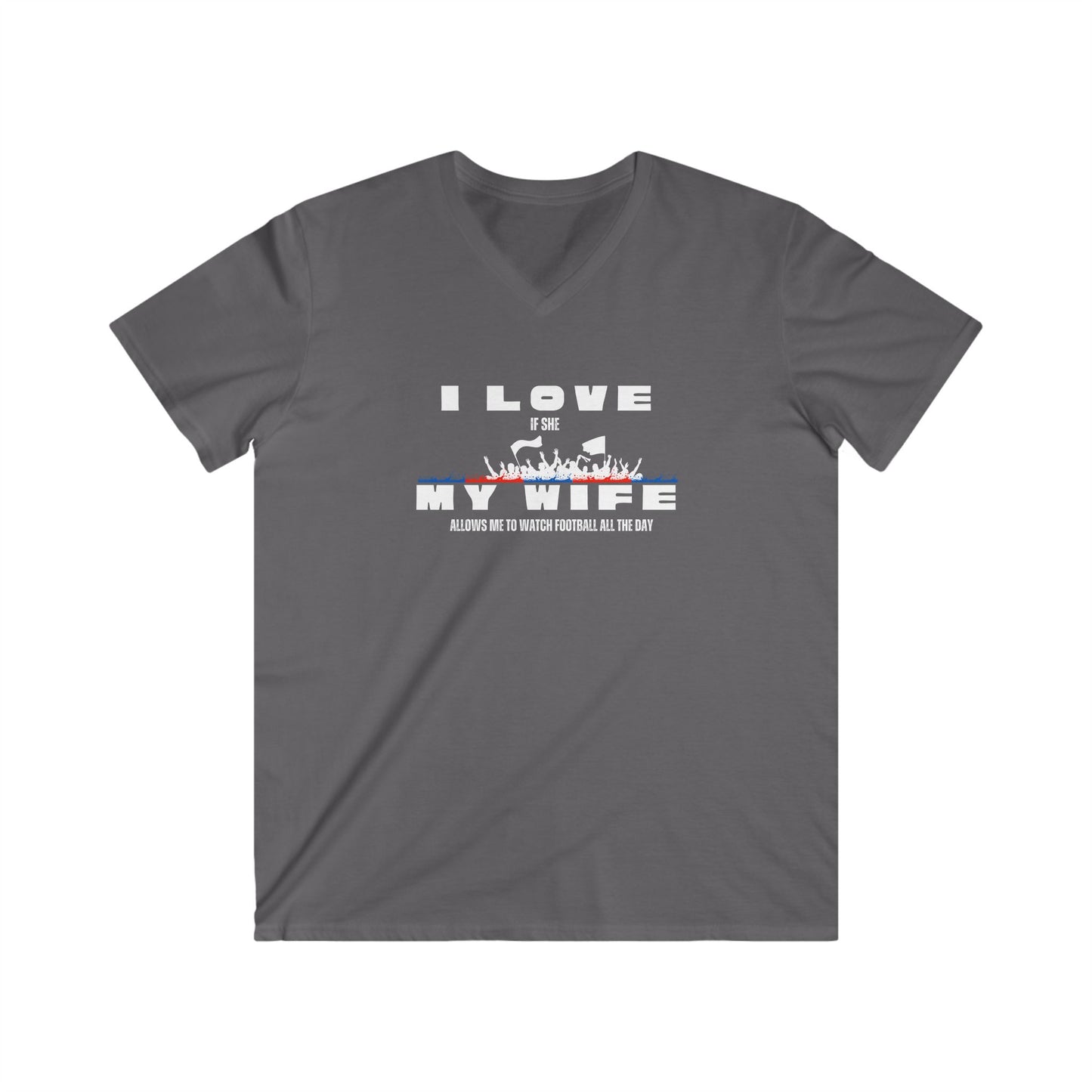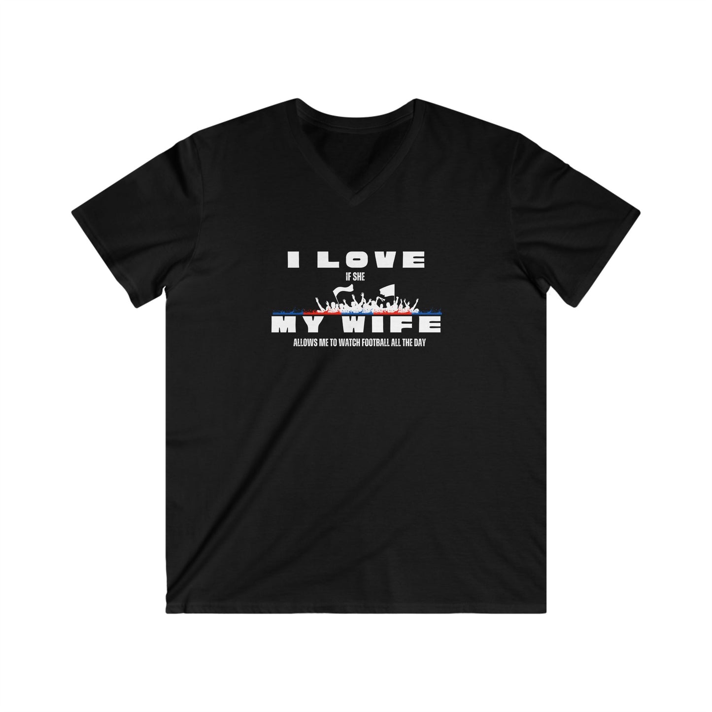 Men's V-Neck Graphic Tee - I love my wife - watch all the day Football