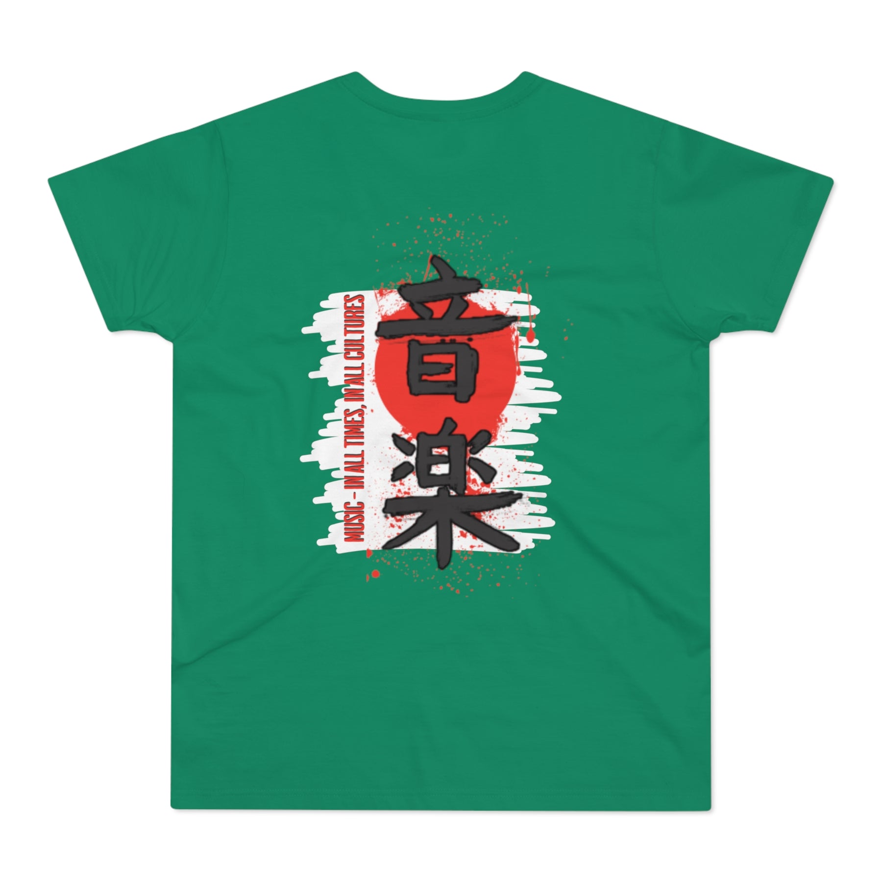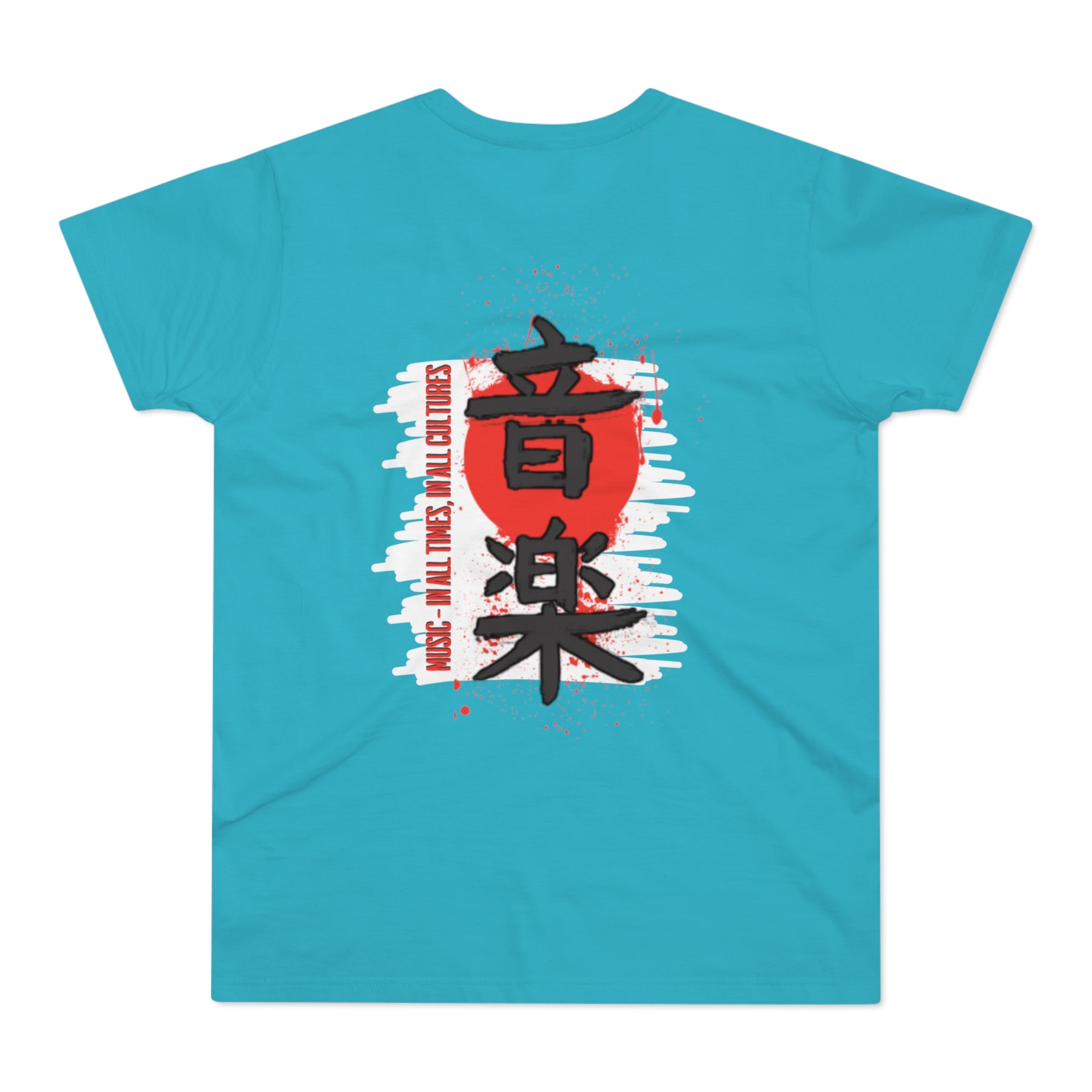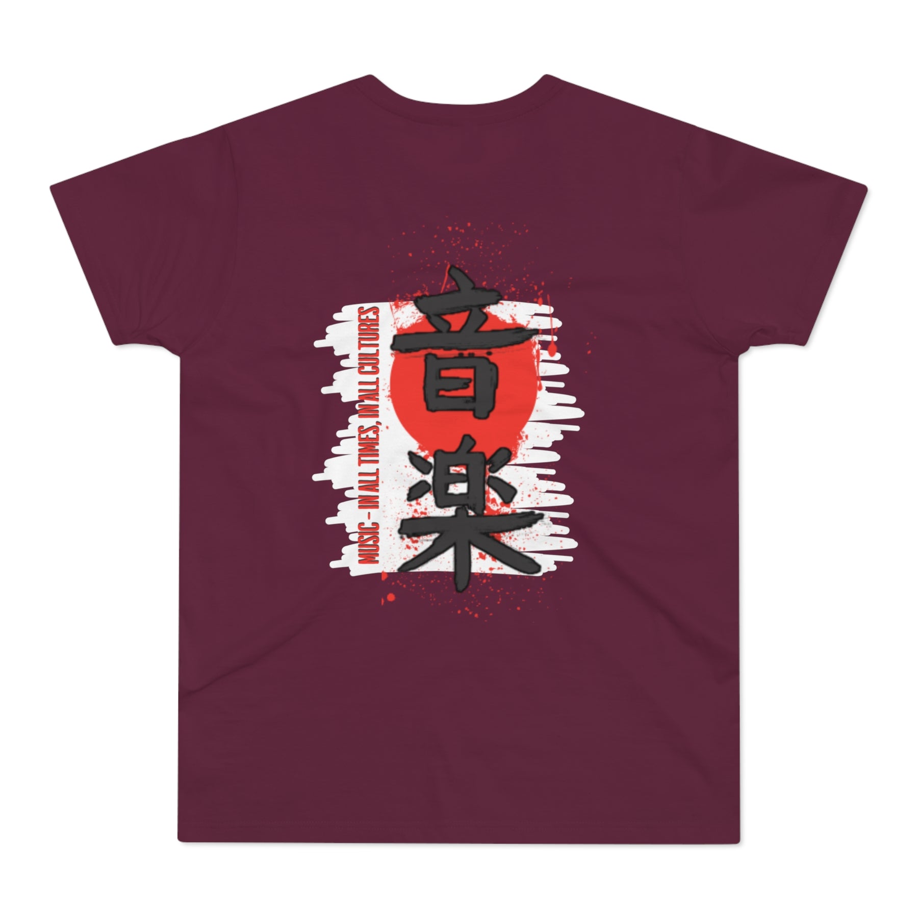 This shirt blends Japanese lettering with a powerful message. A statement piece for those who believe music speaks when words fall short.