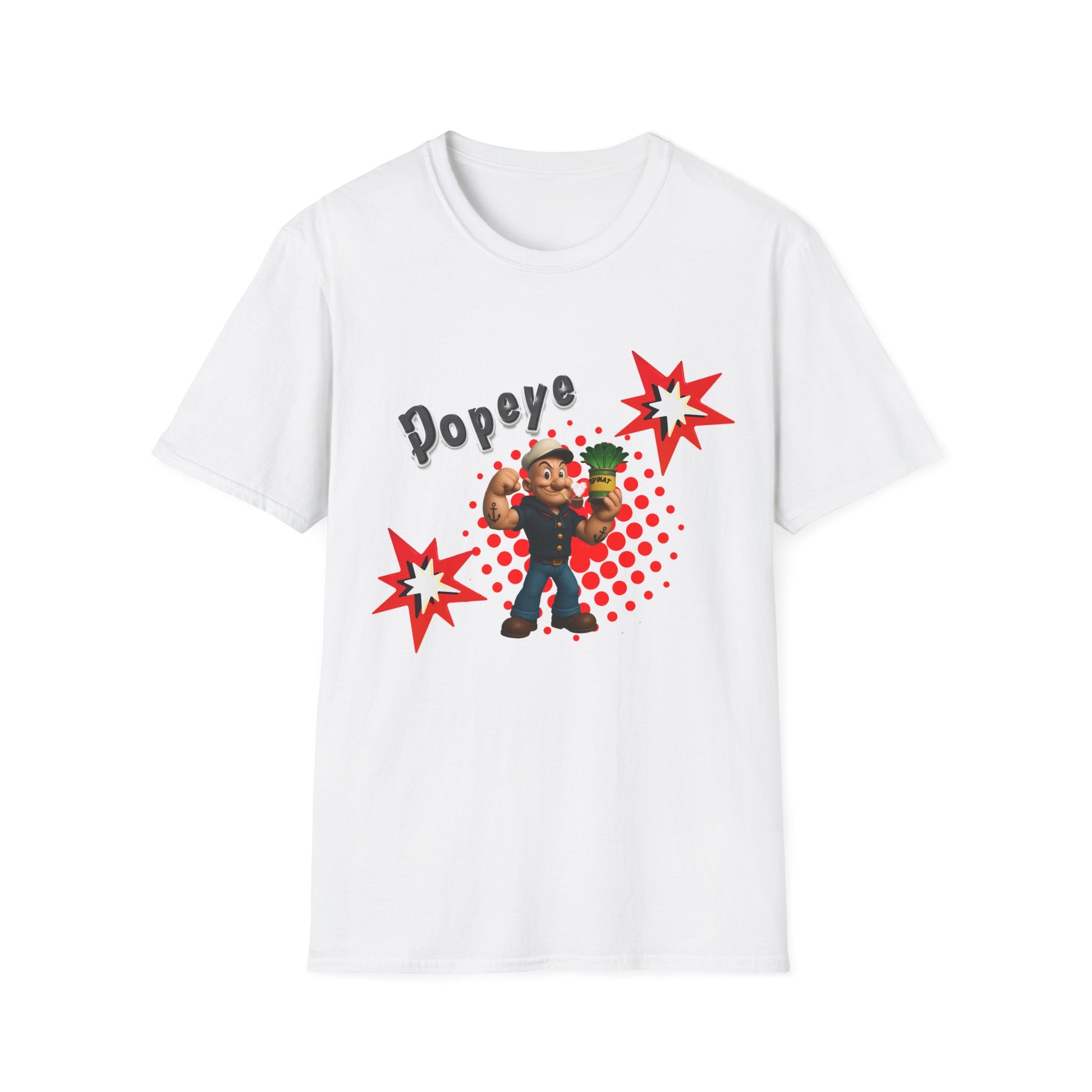 Popeye is back â stronger than ever! This shirt brings the iconic sailor to life in a bold retro comic design. Red explosions, a can of spinach, and that legendary flex â 80s nostalgia in pure form. Perfect for fans of cartoon legends, comic art, and strong statements.