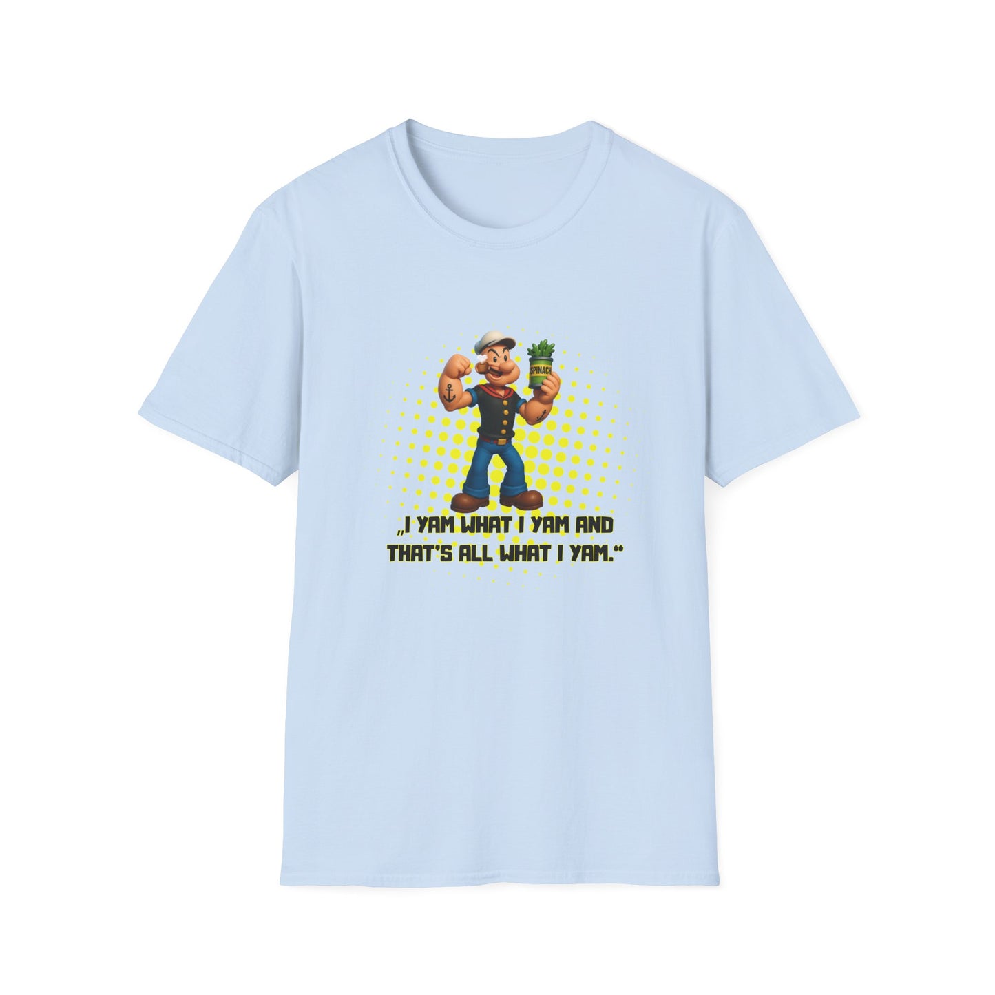 Dieses T-Shirt ist eine Hommage an den stärksten Seemann der Welt und ein klares Statement fĂźr Selbstbewusstsein: âI yam what I yam and thatâs all what I yam.â