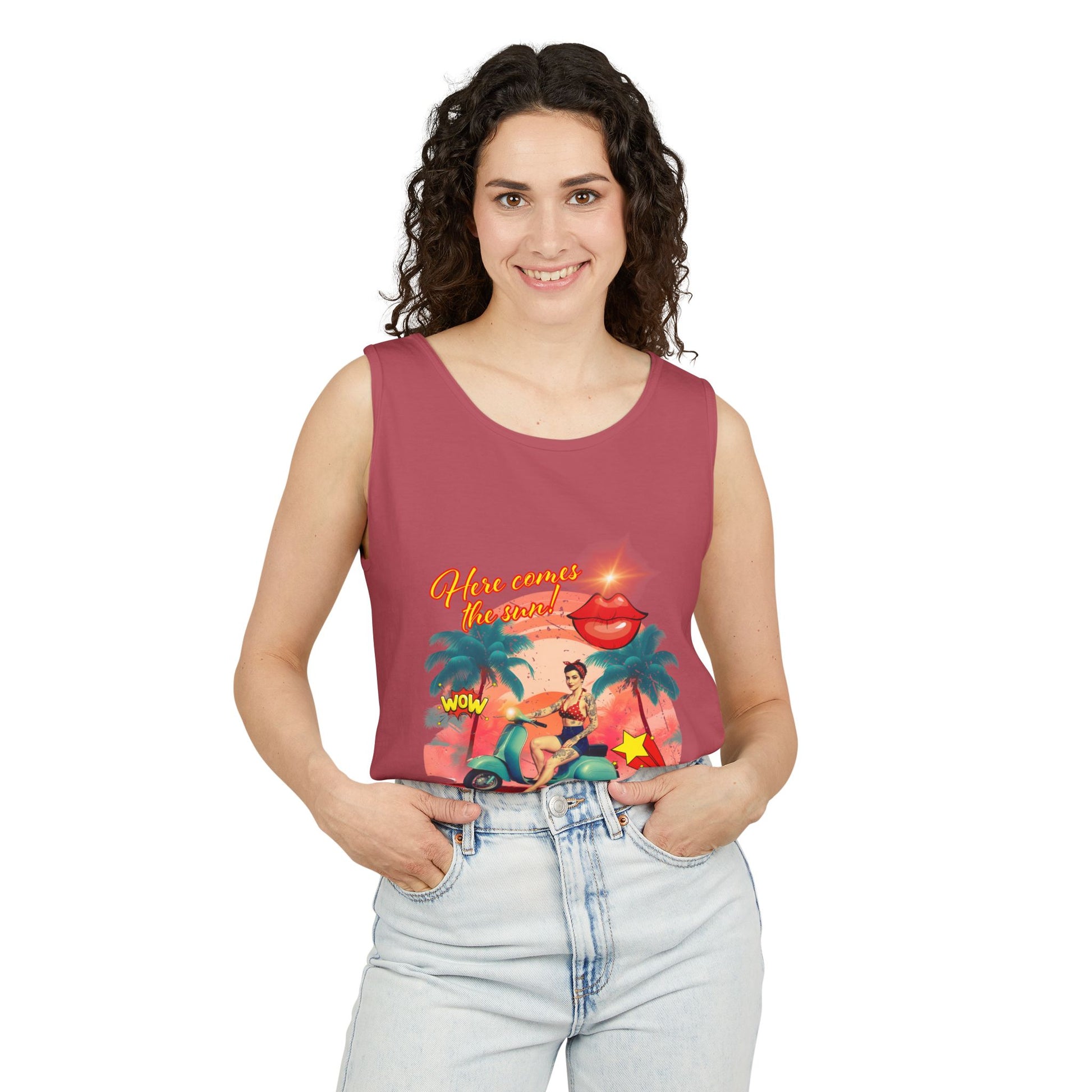 Introducing the ultimate Summer Tank Top, perfect for soaking up the sun and embracing laid-back vibes. This design features a vibrant print that exudes fun and adventure, making it ideal for beach outings, casual gatherings, or just relaxing at home. The relaxed fit ensures comfort throughout the day, while the soft, garment-dyed fabric adds a unique touch to your wardrobe. Whether you're taking a stroll on the boardwalk or attending a summer barbecue, this tank top fits seamlessly into your lifestyle. Itâs also a great gift for friends and family during warm-weather celebrations, holidays, or just as a fun surprise to brighten someone's day!