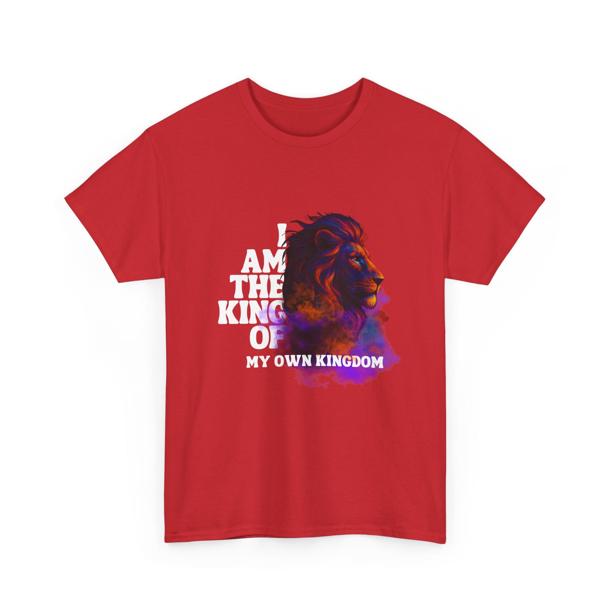 Confident. Powerful. Unstoppable. This striking design features a majestic lion in bold, fiery colors, alongside the fearless statement: "I am the King of my own Kingdom." Made for those who carve their own path â royal, fierce, and proud.