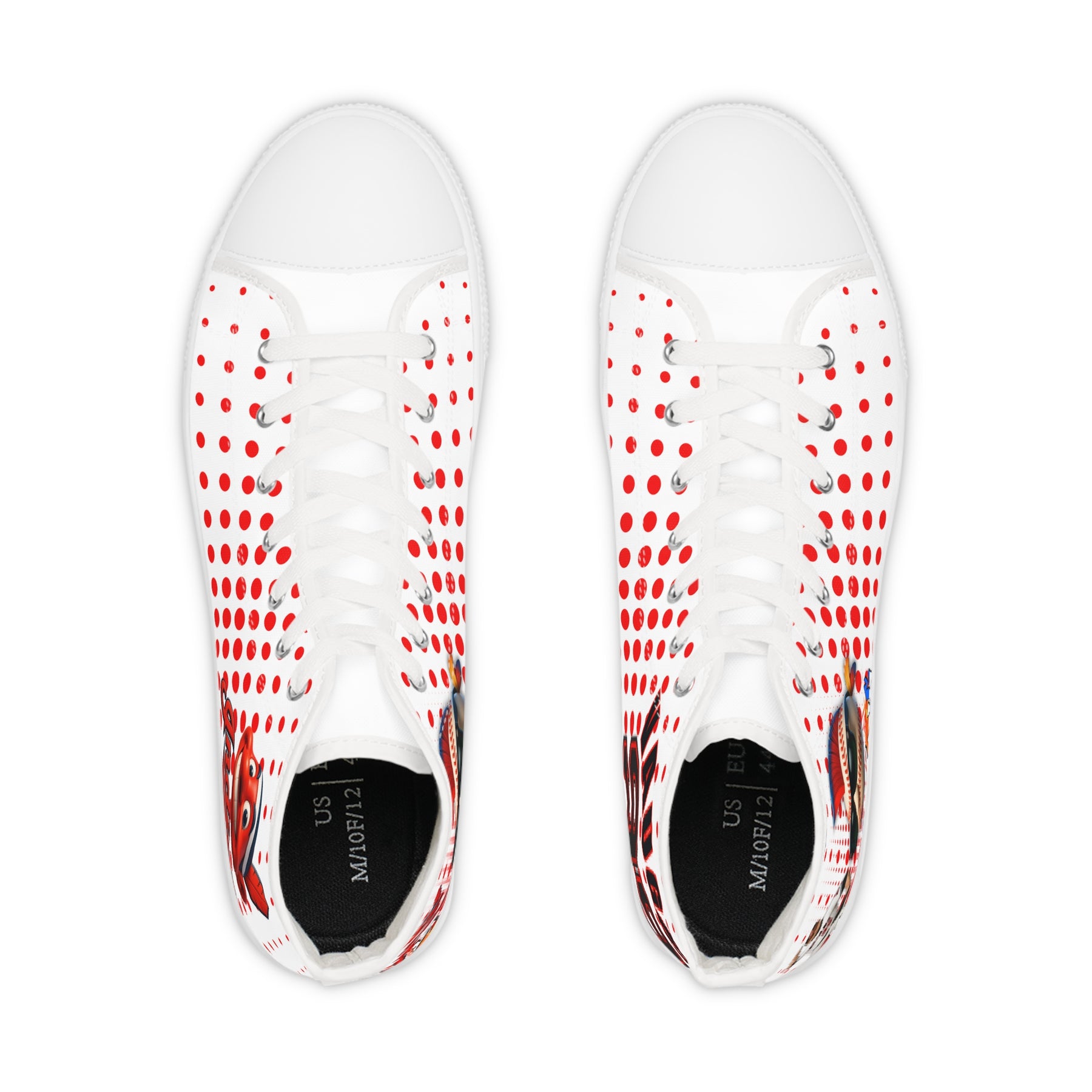 Step into style and comfort with these Men's High Top Sneakers, designed to elevate any outfit. Made from 100% polyester canvas, these sneakers offer a super soft and comfortable fit, perfect for daily wear or weekend adventures. The vibrant design adds a pop of personality, making them a statement piece for any casual occasion. Ideal for sneaker enthusiasts, urban explorers, or anyone looking to express their unique style. Perfect for holidays, birthdays, or simply treating yourself, these high tops are ready to become your new go-to footwear for any fun outing.