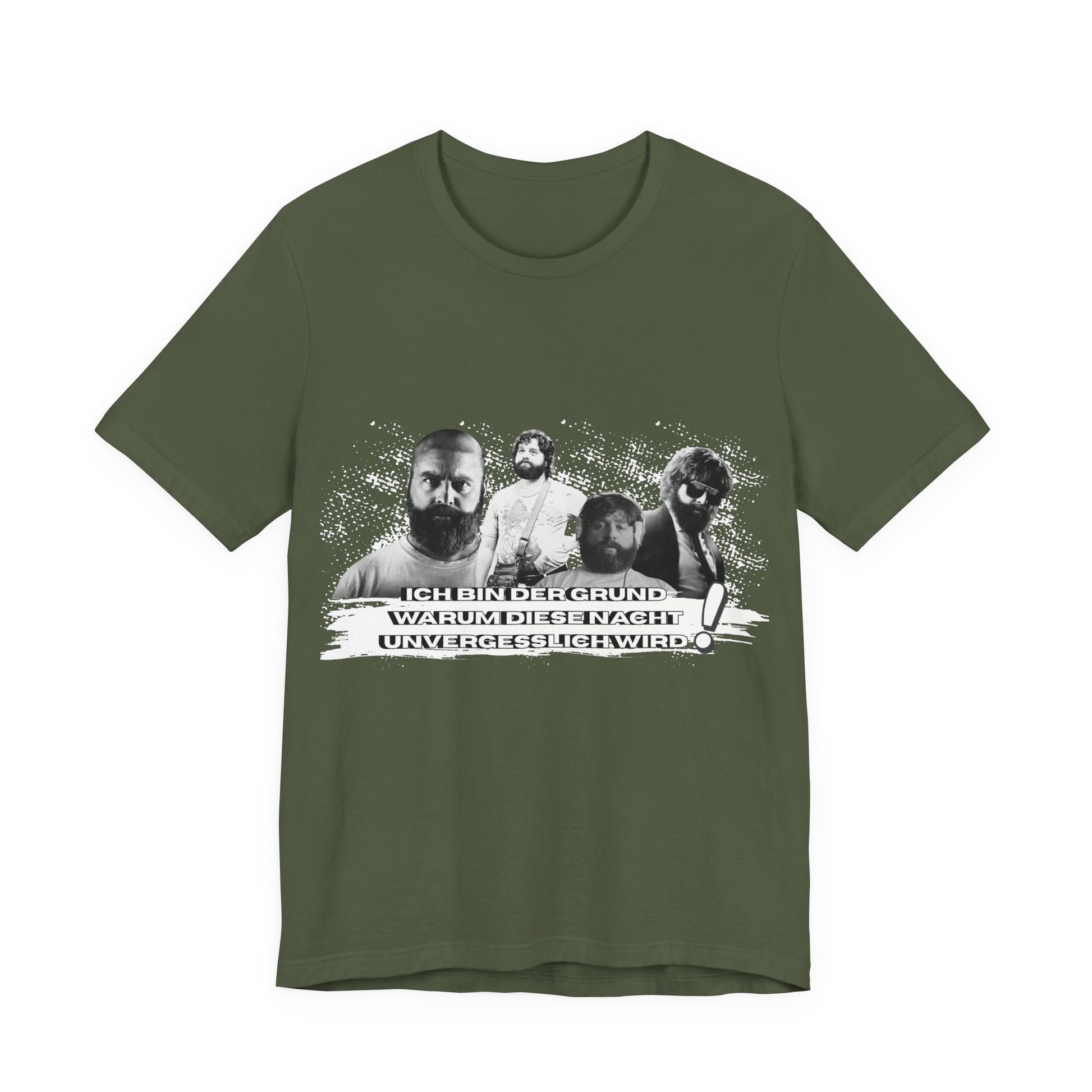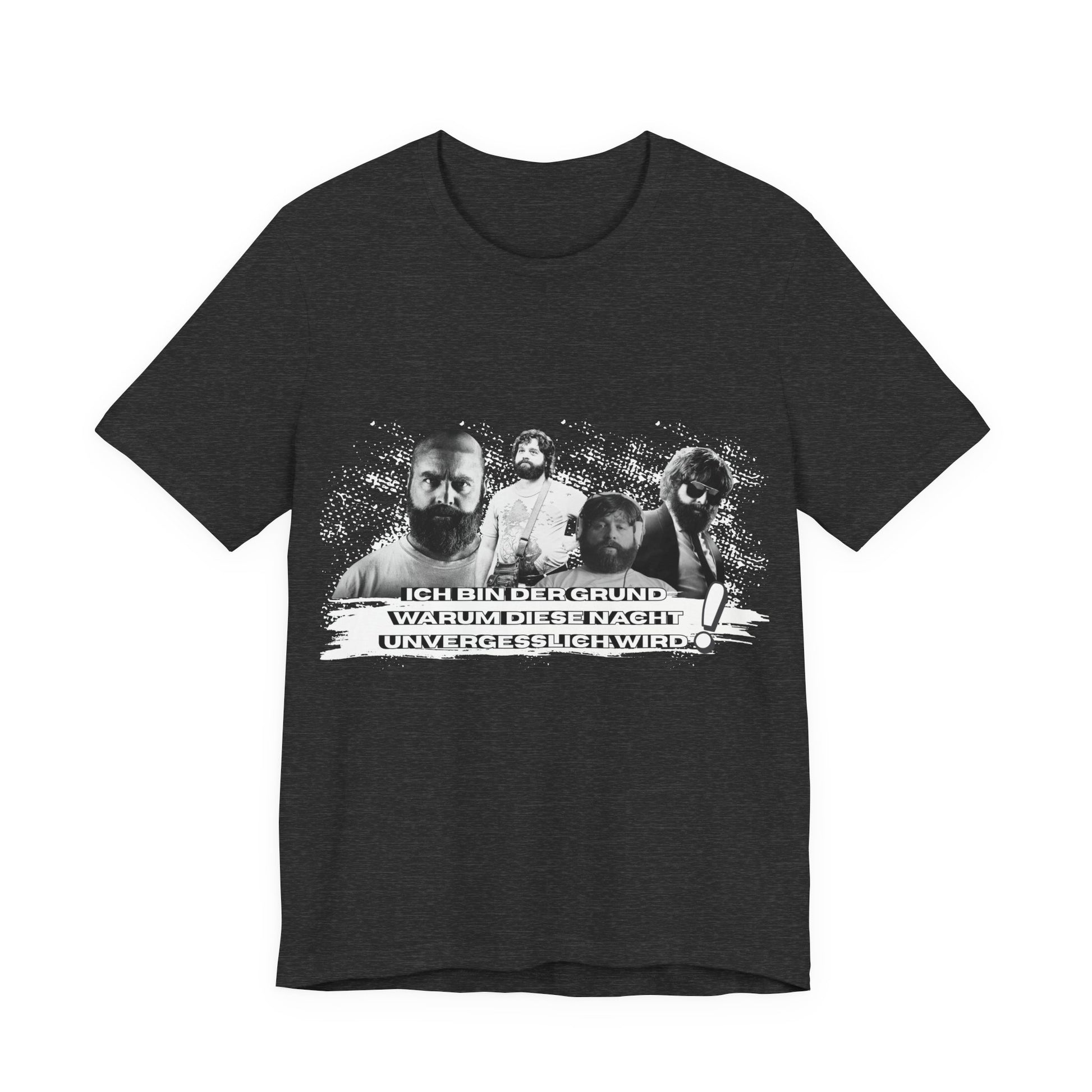 Vier Typen. Ein Ziel: Eskalation. Dieses T-Shirt bringt den legendären Vibe eines Abends, den niemand je vergisst â vor allem nicht wegen dir. Mit dem Statement âIch bin der Grund, warum der Abend unvergesslich wirdâ und kultigem Schwarz-WeiĂ-Print bist du der garantierte Mittelpunkt jeder Party.