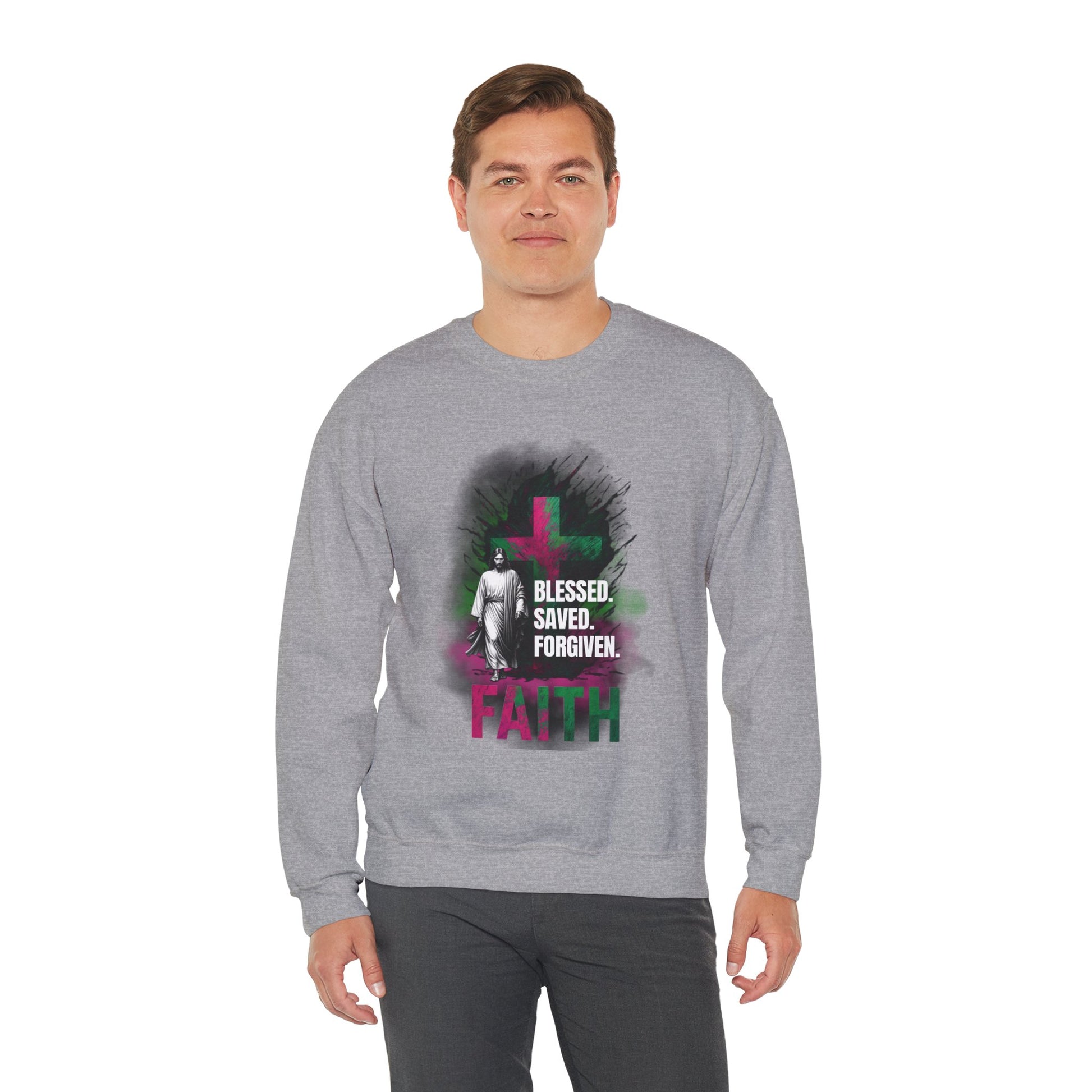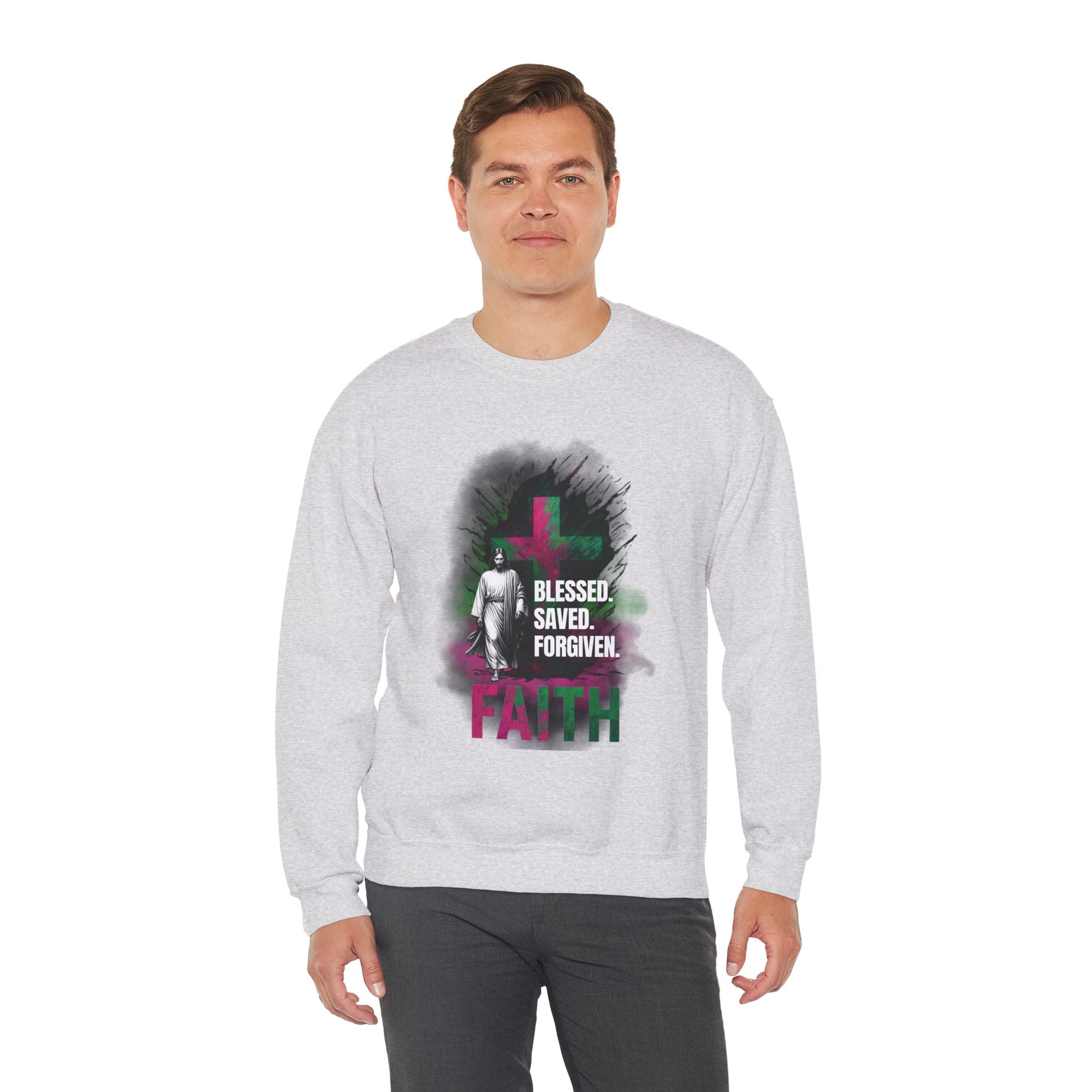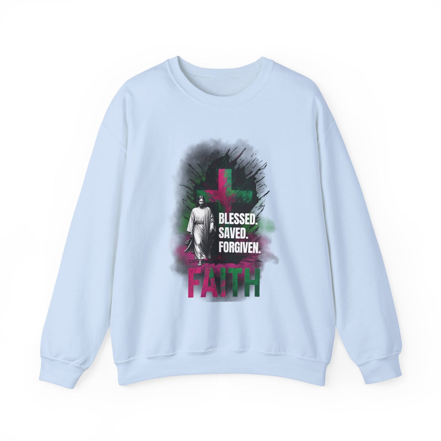 Jesus mit Faith und Spruch Blessed -Saved -Forgiven Sweatshirt
