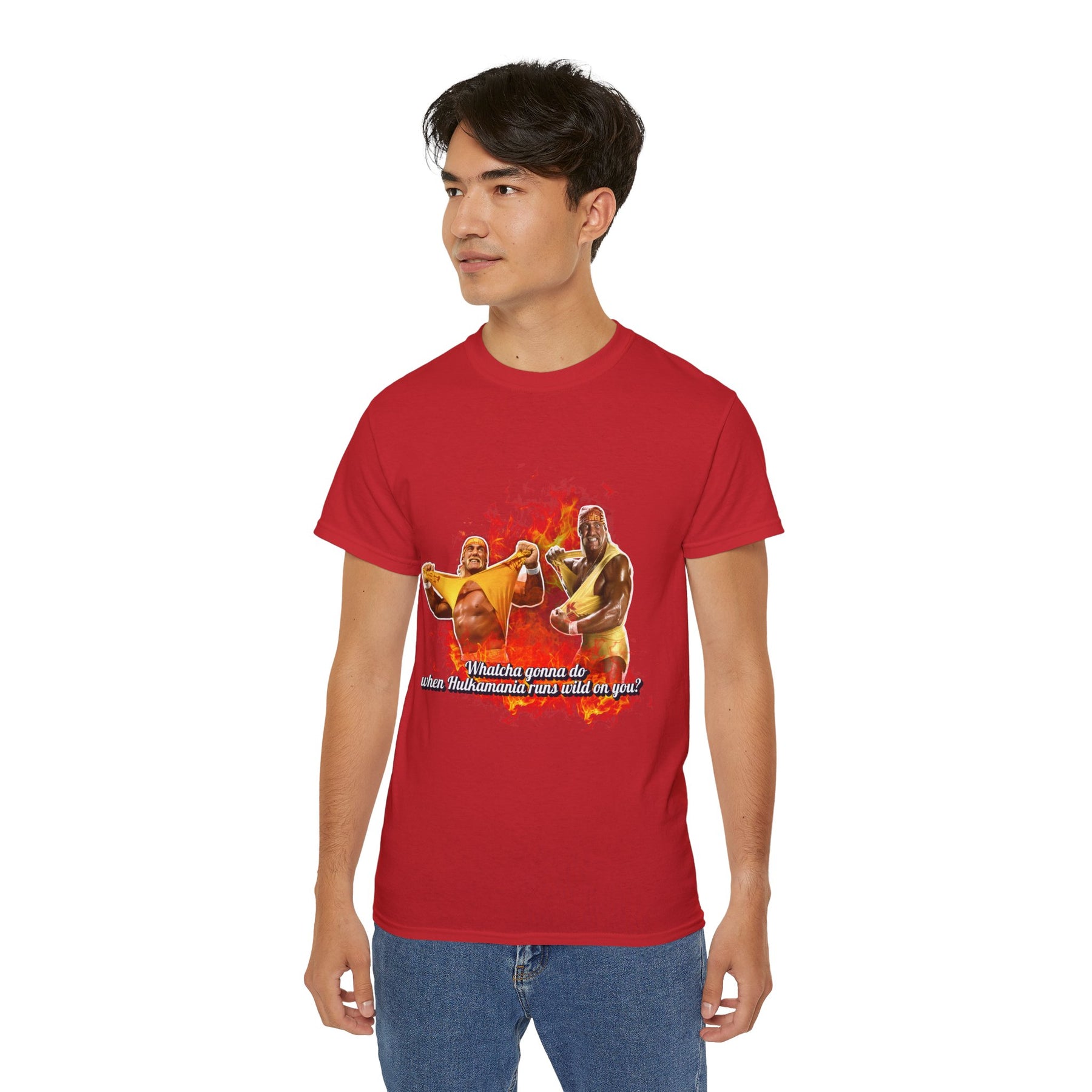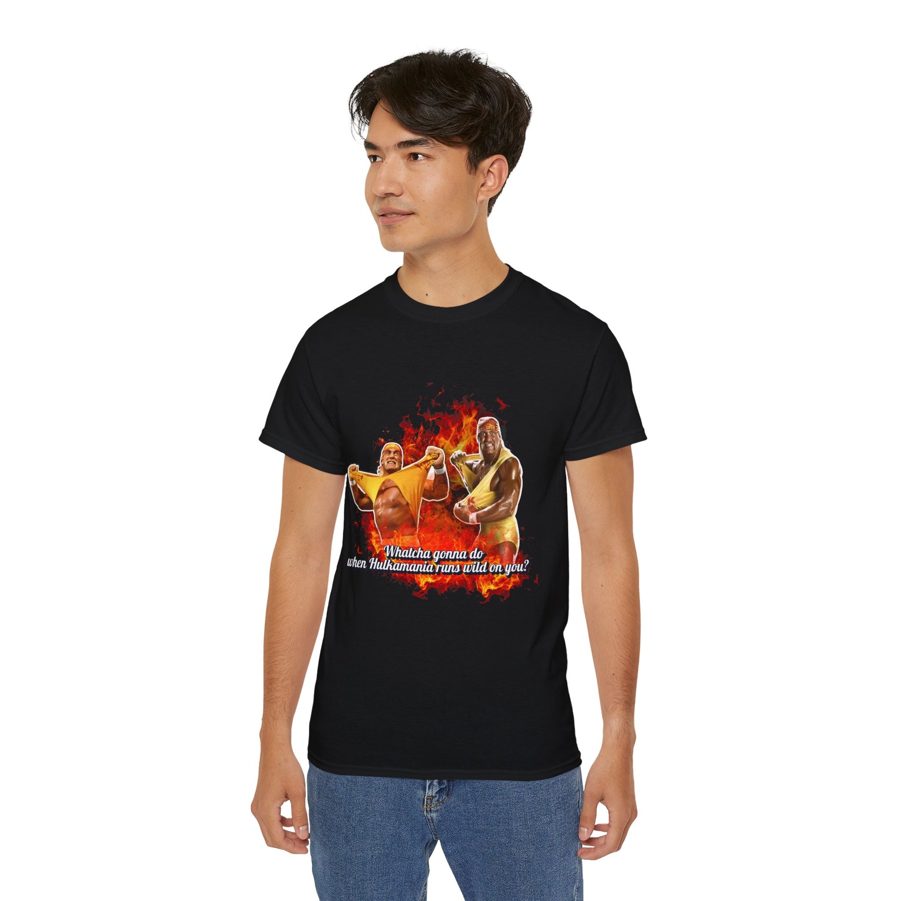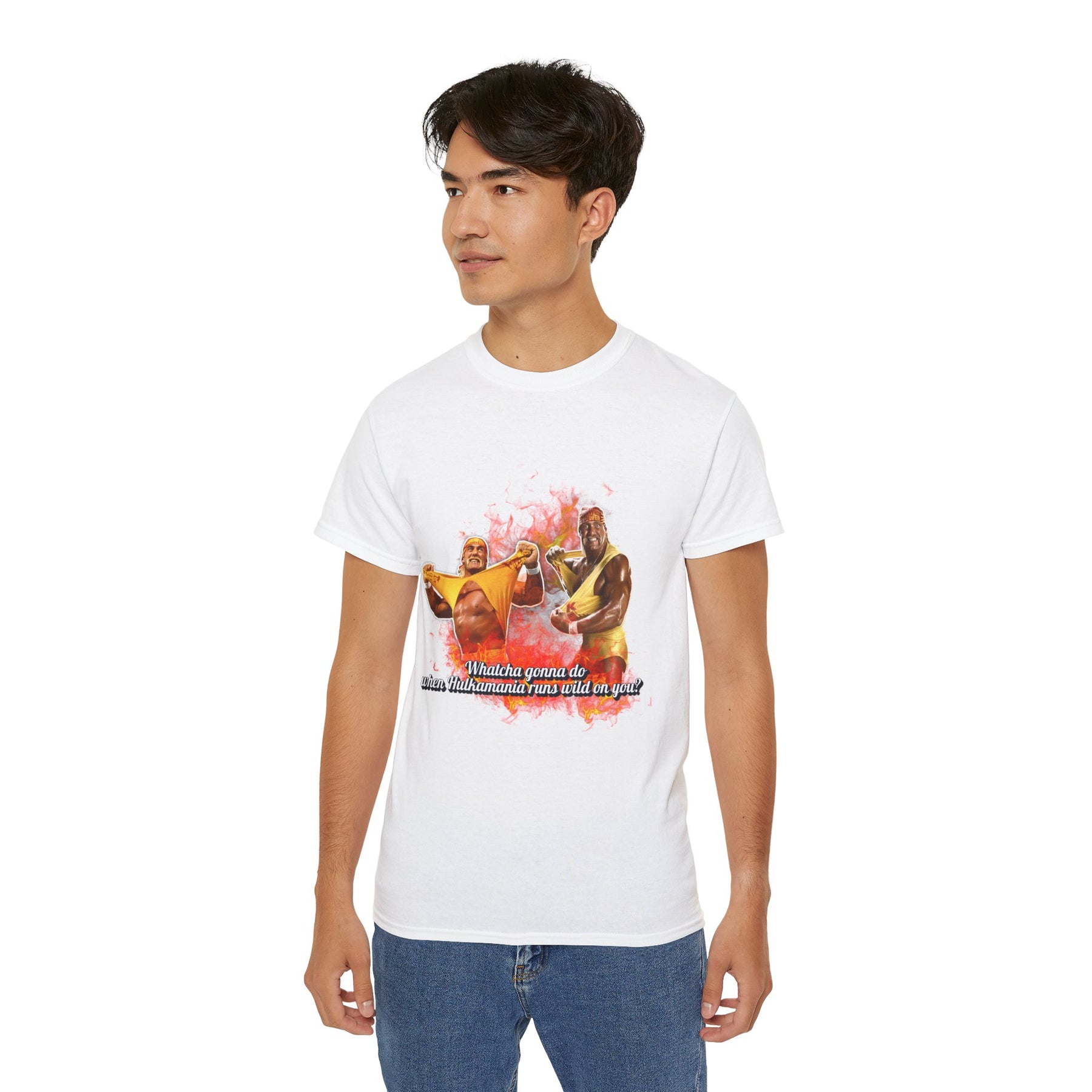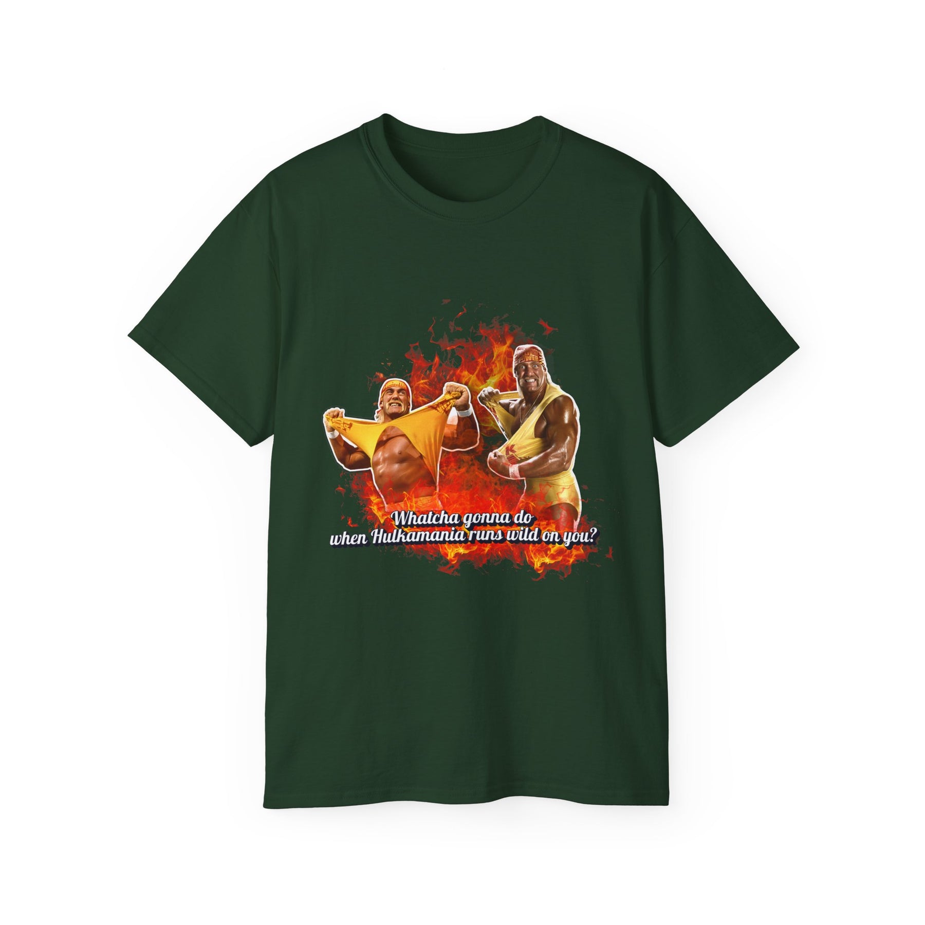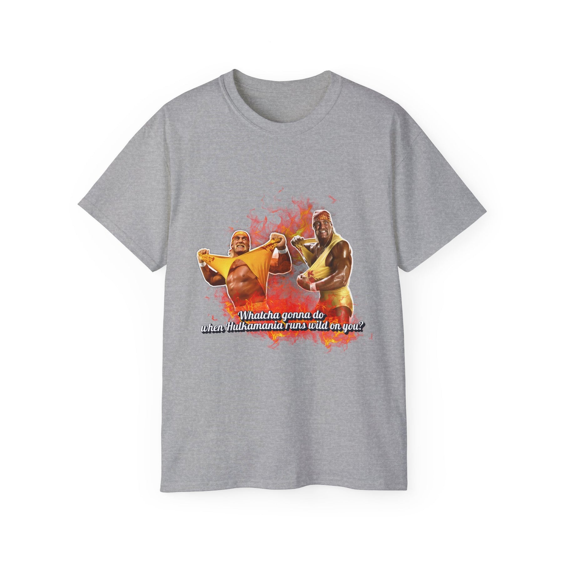 Bereit für den Ring? Diese Kollektion bringt dir die größten Legenden der Wrestling-Geschichte direkt in den Kleiderschrank: Hulk Hogan mit seinem legendären Spruch „Whatcha gonna do when Hulkamania runs wild on you?“