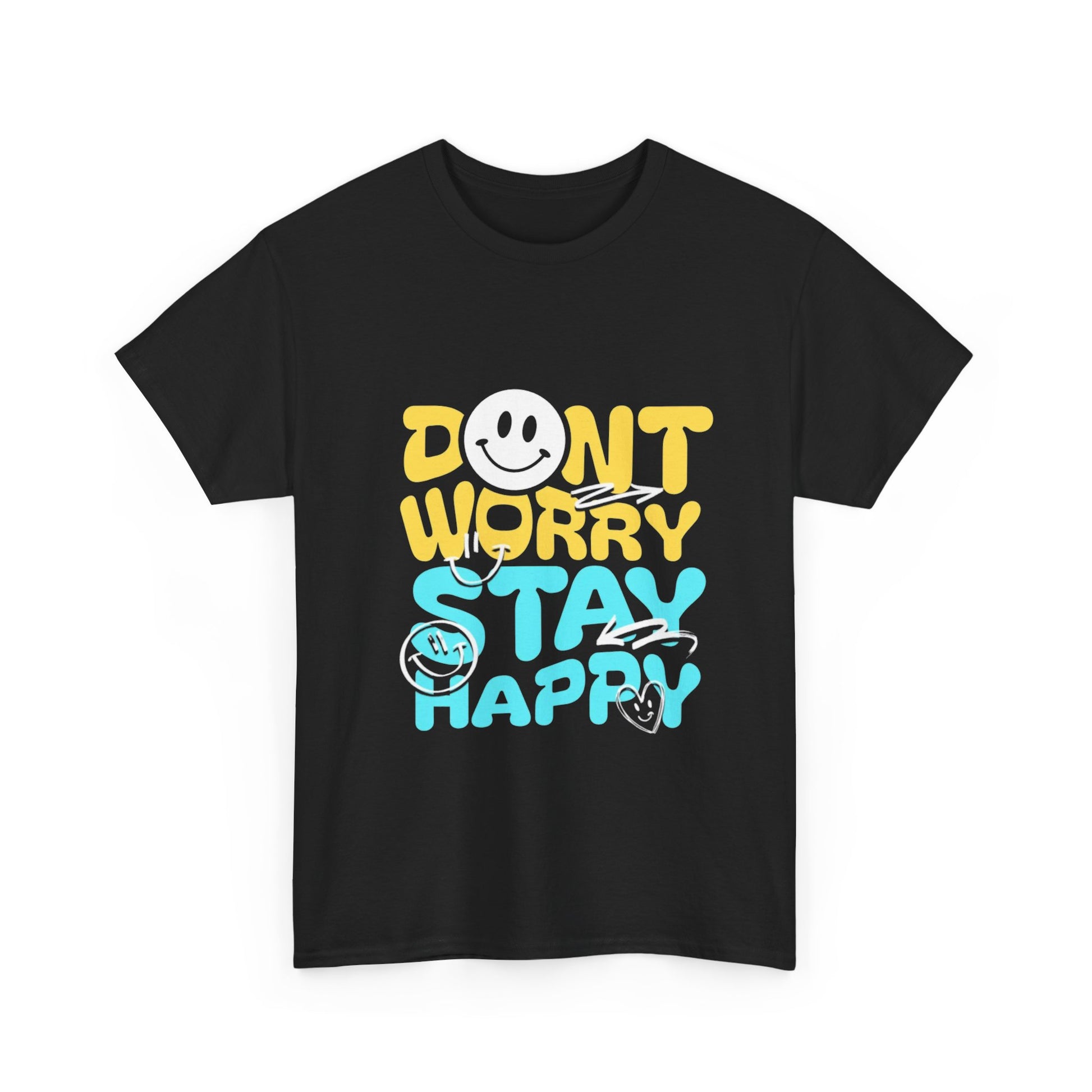 Quote: âDonât worry â Stay happyâ in casual, bold or playful font