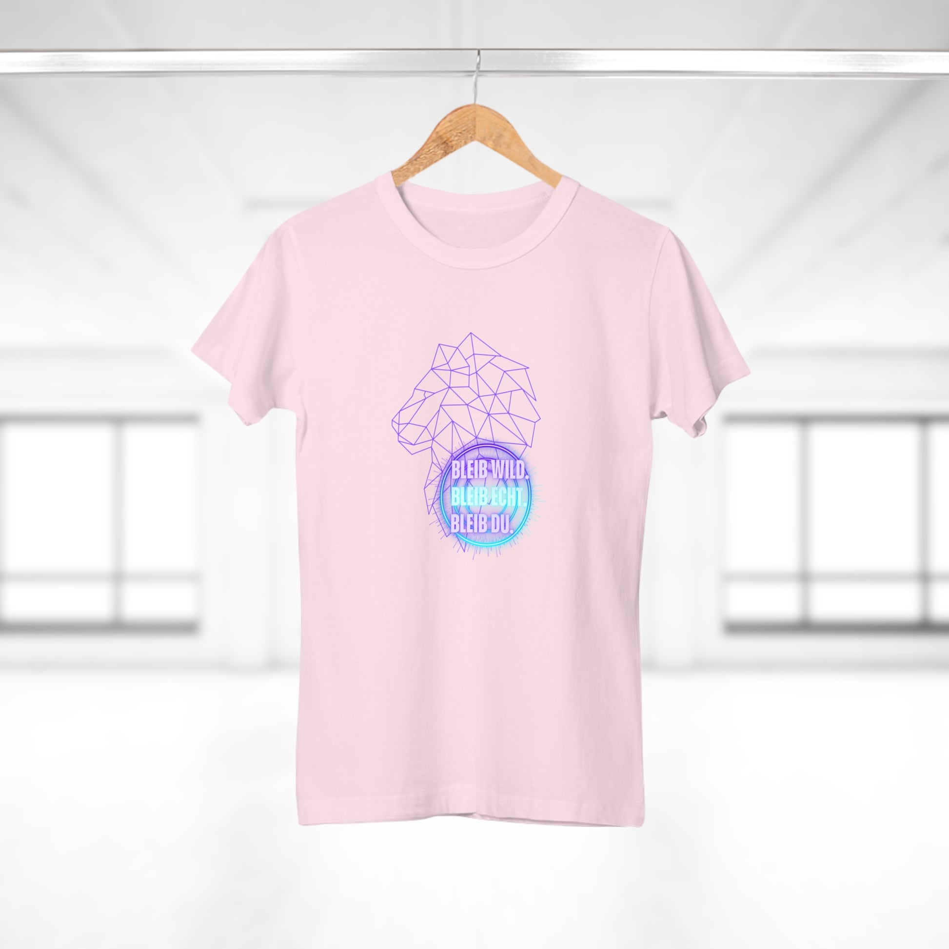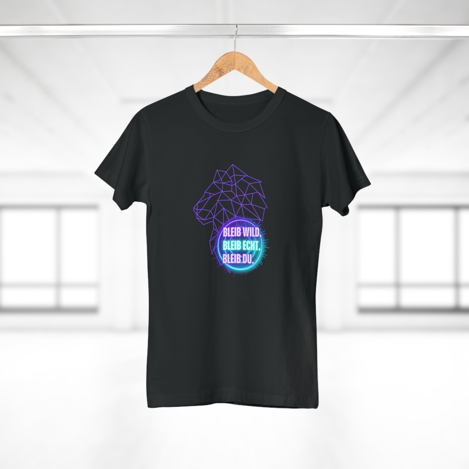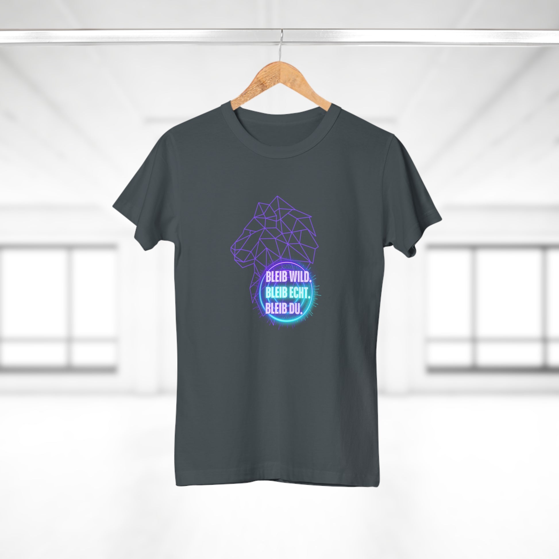 Women's Inspirational Lion T-Shirt - 'Bleib-Wild, Bleib-Echt, Bleib-Du' Design