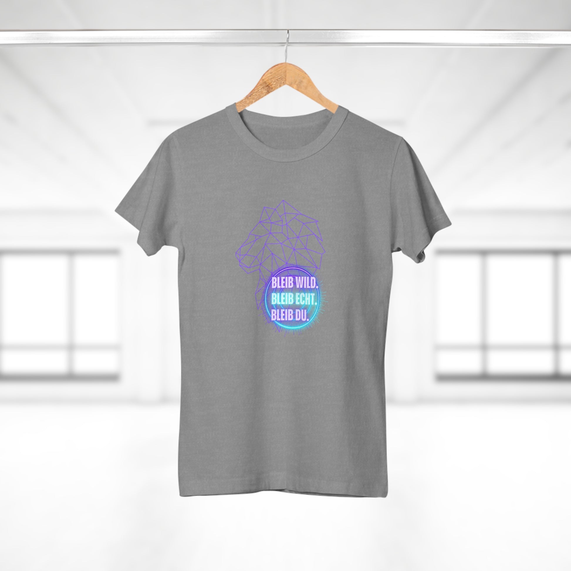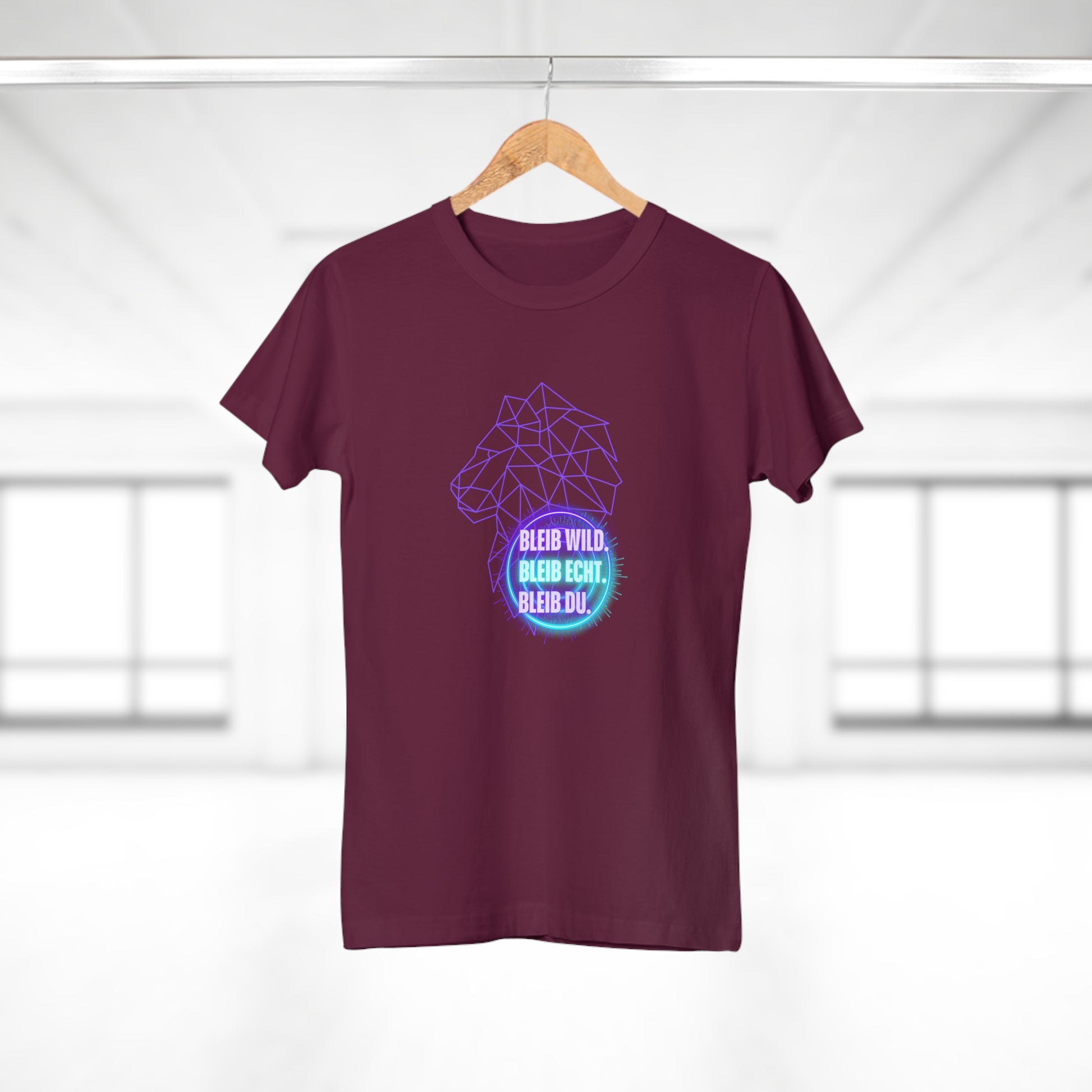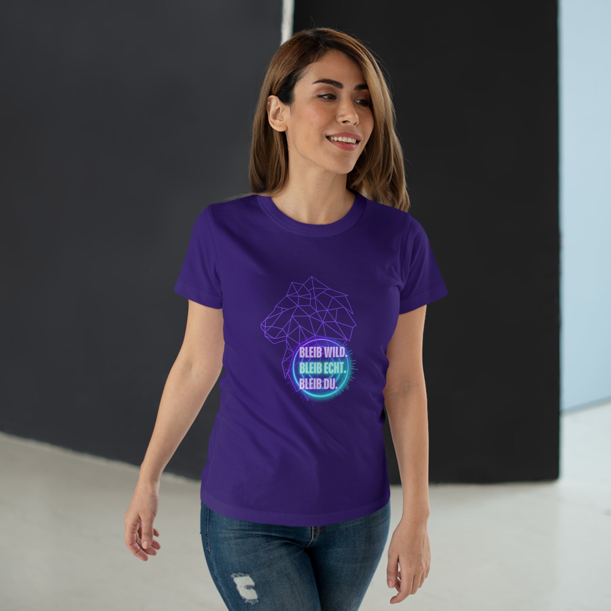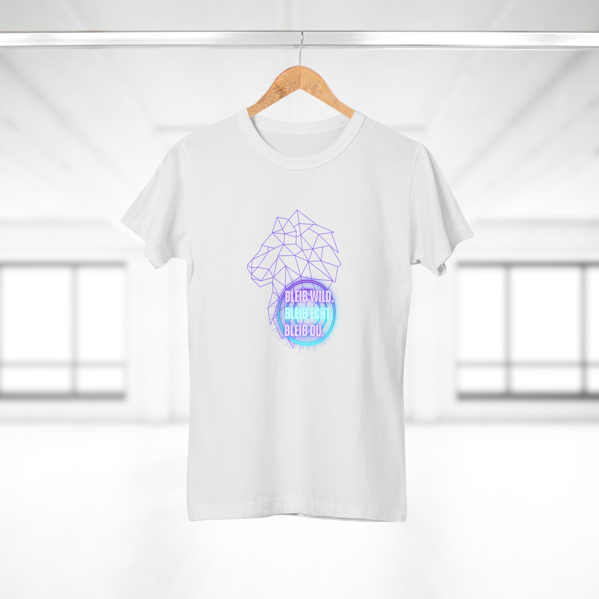 Women's Inspirational Lion T-Shirt - 'Bleib-Wild, Bleib-Echt, Bleib-Du' Design